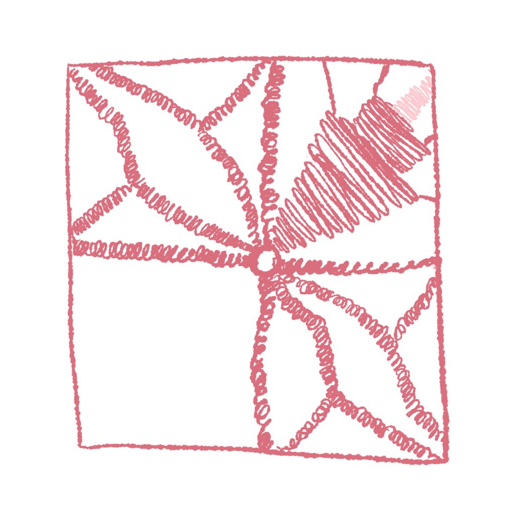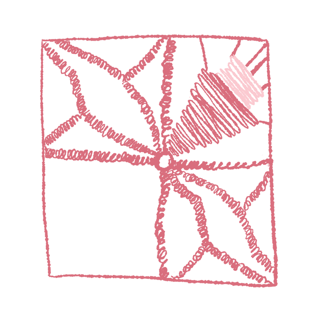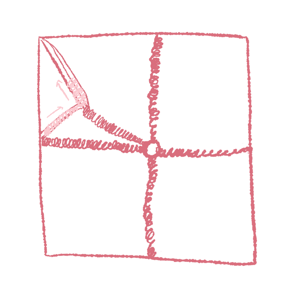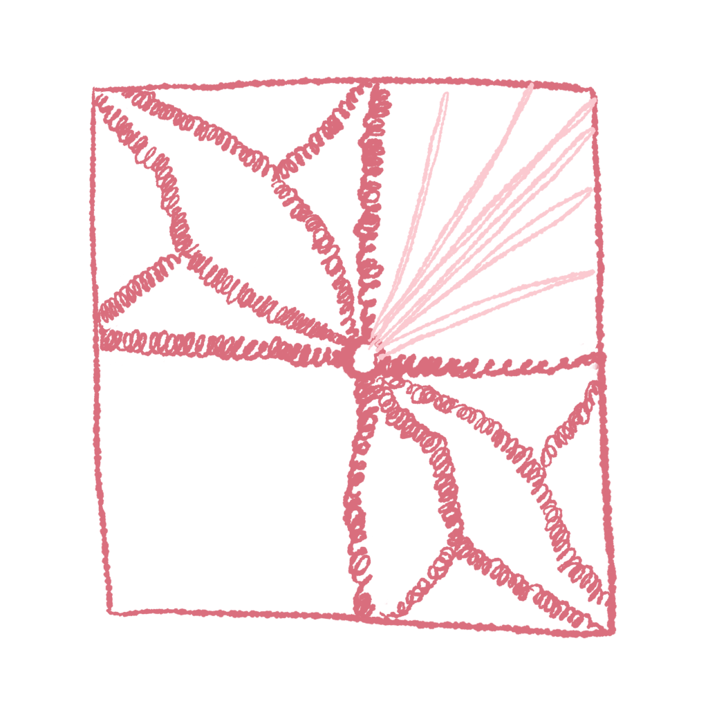 Create another buttonholed arc in the top-left square. Repeat the same process to make an identical motif in the bottom-right square.