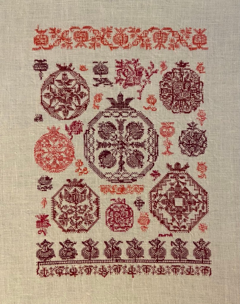 All told, I must have spent at least 100 hours stitching. There are a few mistakes that are probably imperceptible unless you compare my work to the chart. I considered fixing one of them, but again I think there’s something poetic about this error hiding in plain sight.
