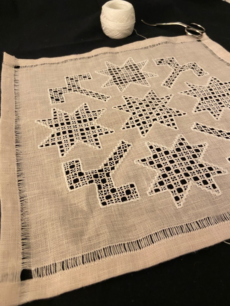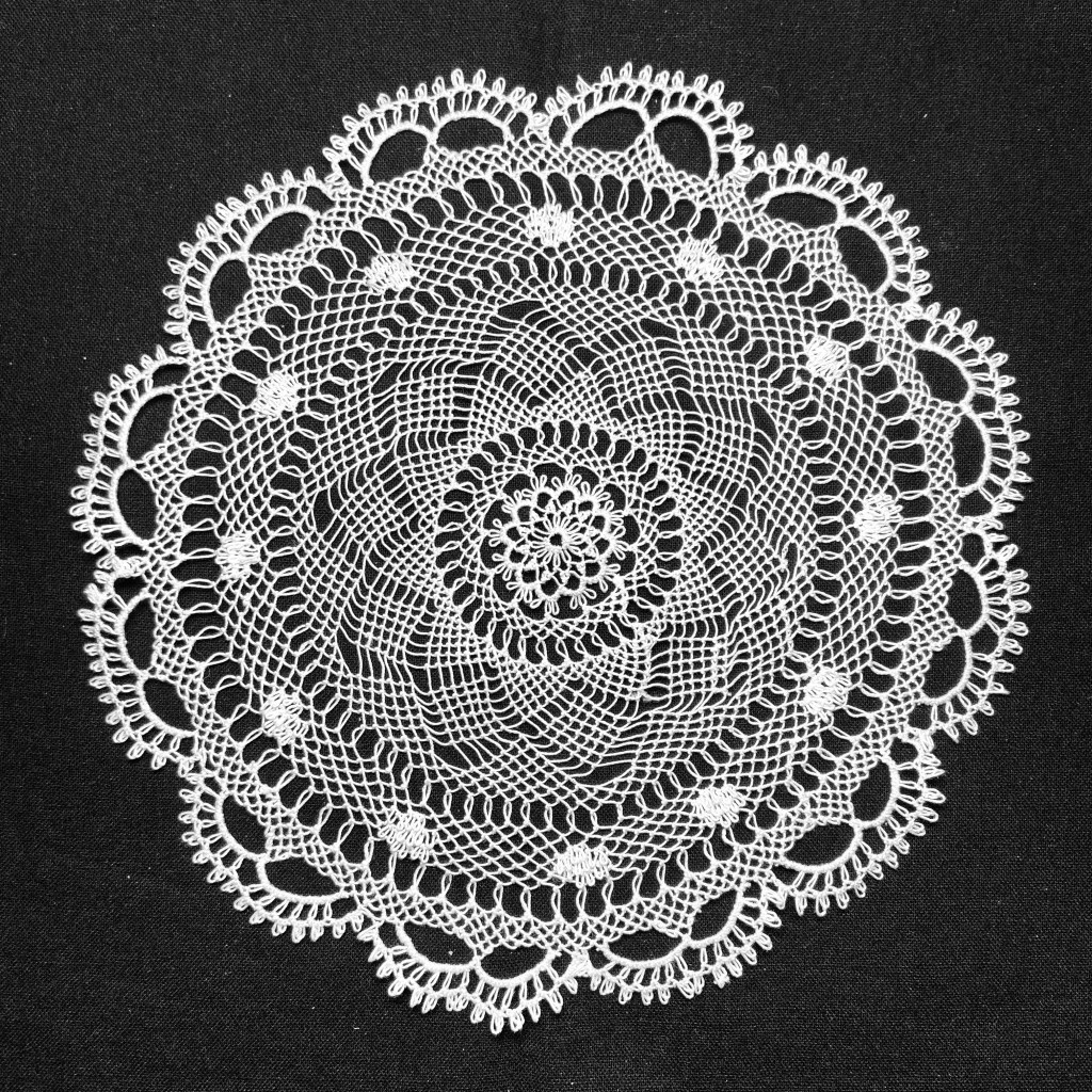 I had some work travel earlier this year and made a doily to pass the time during the trip. I can’t do counted embroidery on planes anymore so the doily was a perfect travel project, especially since one of my flights was significantly delayed. This doily wasn’t on the WIP list but it was a quick finish so I’m counting that as successful.